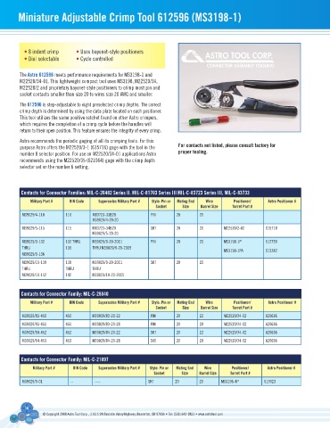 purpose Astro offers the M22520/3-1 (615716) gage with the tool in the for contacts not listed, please consult factory for