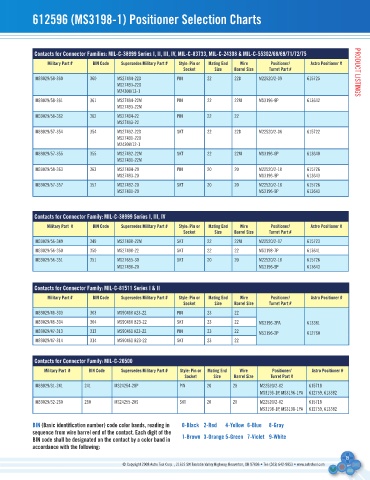 Military Part # bIn Code supersedes Military Part # style: Pin or Mating end Wire Positioner/ astro Positioner #
