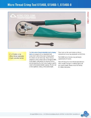 • Micro thread adjustable screw which controls the proper crimping depth The 615466 tool is 9 inches long and weighs