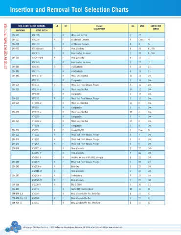 Insertion and Removal Tool Selection Charts Listed by Contact Manufacturer