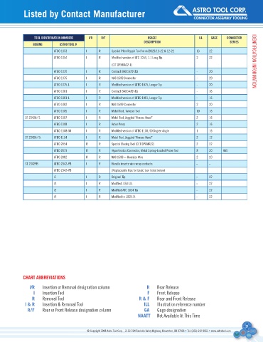 Insertion and Removal Tool Selection Charts Listed by Contact Manufacturer