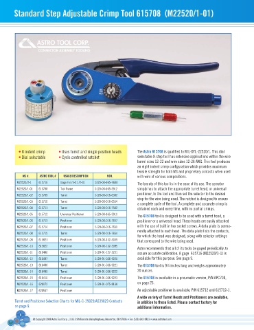 • 8 indent crimp • Uses turret and single position heads The astro 615708 is qualified to MIL-DTL-22520/1. This dial