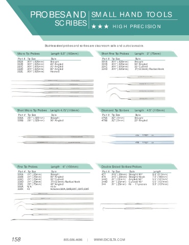 Short Micro Tip Probes Length 4.75”(119mm) Diamond Tip Scribes Length 4.5” (115mm)