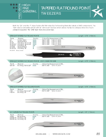 Both the ‘2A’ and the ‘F’ styles feature fl at thin wide tips for handling items like labels or SMD components. The