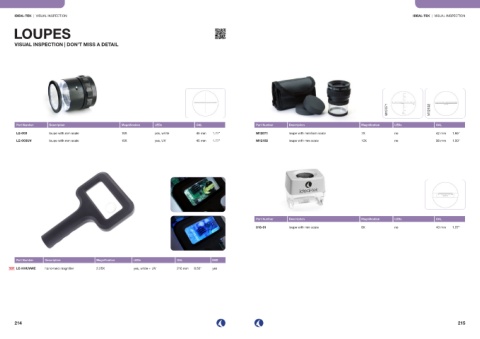 LE-003 loupe with mm scale 10X yes, white 45 mm 1.77" M12071 loupe with mm/inch scale 7X no 42 mm 1.65"