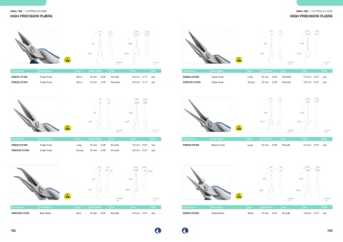 ES6023.CR.BG Snipe Nose Long 10 mm 0.39" Smooth 140 mm 5.51" yes ES6025.CR.BG Needle Nose Long 10 mm 0.39" Smooth 140 mm 5.51" yes