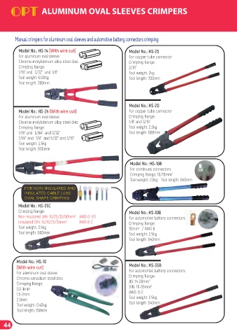 Manual crimpers for aluminum oval sleeves and automotive battery connectors crimping
