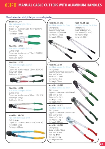 MANUAL CABLE CUTTERS WITH STEEL HANDLES MANUAL CABLE CUTTERS WITH ALUMINUM HANDLES