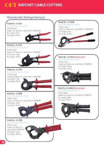Manual cable cutters: Ratchet type & bearing type