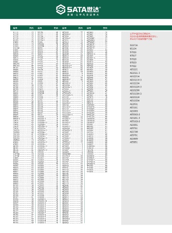01118 .........................72  95158 .........................69  AE3104 ......................77  AE5883 ......................26  在SATA各地销售网络售完即止,