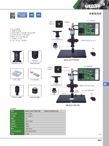 亮度、对比度、增益调节 微调焦手轮(分度值: 2µm)