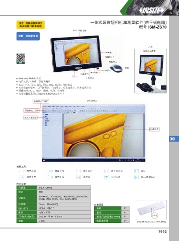 注意: 需根据显微镜另 一体式显微镜相机和测量软件(带平板电脑)