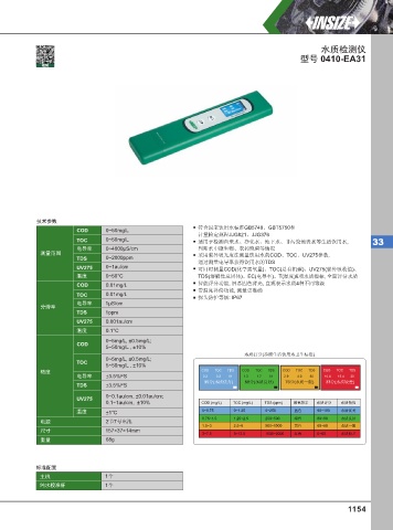 TOC 0~50mg/L 适用于检测自来水、净化水、地下水、非污染地表水等生活饮用水, 33