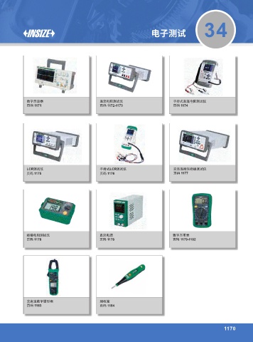 电⼦测试 34 数字示波器 直流电阻测试仪 手持式直流电阻测试仪 页码 1171 页码 1172-1173 页码 1174 LCR测试仪 手持式LCR测试仪 交直流耐压绝缘测试仪 页码 1175 页码 1176 页码 1177 绝缘电阻测试仪 直流电源 数字万用表 页码 1178 页码 1178 页码 1179-1182 交直流数字钳形表 测电笔 页码 1183 页码 1184 1170