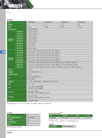 35 J型热电偶 ±1.0°C (处于-100°C~0°C); ±0.7°C (处于0°C~1200°C)