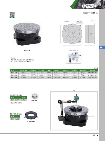 型号 台面尺寸ØD 最大转速 供气压力 承载 径向刚度 轴向刚度 径向跳动 轴向跳动 L×W×H