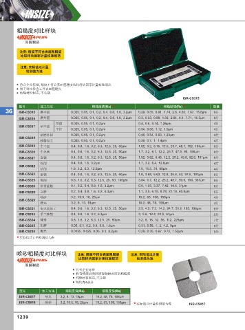 ISR-CS316 磨外圆 0.025, 0.05, 0.1, 0.2, 0.4, 0.8, 1.6, 3.2µm 0.3, 0.53, 0.88, 1.56, 2.64, 4.4, 7.71, 15.3µm 8片