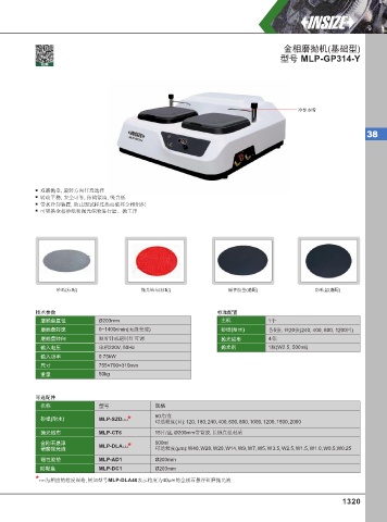 磨抛盘转速 0~1400r/min(无级变速) 砂纸(耐水) 各5张, 共20张(240, 400, 800, 1200目)