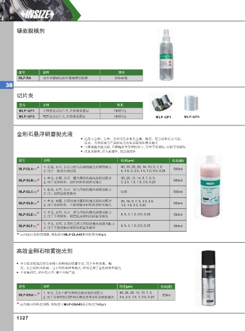 MLP-DLB□□ * 2. 用于柔软材料、 韧性材料的研磨及抛光 3, 2.5, 1.5, 1.0, 0.5, 0.25 500ml