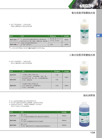 MLP-LXA□□ * 1. 高纯度氧化铝微粉调制而成, 磨料硬度高, 40, 28, 20, 14, 10, 500ml