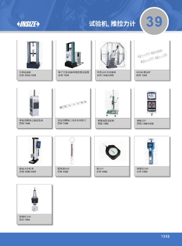 试验机, 推拉⼒计 39 万能试验机 电子万能试验机高低温试验箱 半自动冲击试验机 冲击标准试样 页码 1333-1339 页码 1334 页码 1342-1343 页码 1343 冲击试样缺口液压拉床 冲击试样缺口拉床专用拉刀 弹簧拉压试验机 推拉力计 页码 1344 页码 1344 页码 1345 页码 1346-1356 推拉力计机架 管形测力计 张力计 线绳张力计 页码 1350-1361 页码 1362 页码 1362 页码 1363 主轴拉力计 页码 1364 1332