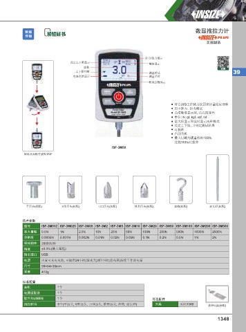 推拉附件 6个(平压头, V形压头, 刀口压头, 锥形压头, 拉钩, 延长杆) 夹具 页码1349 软件U盘(标配)
