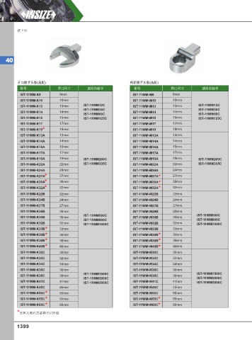 型号 开口尺寸 适用的扳手 型号 开口尺寸 适用的扳手