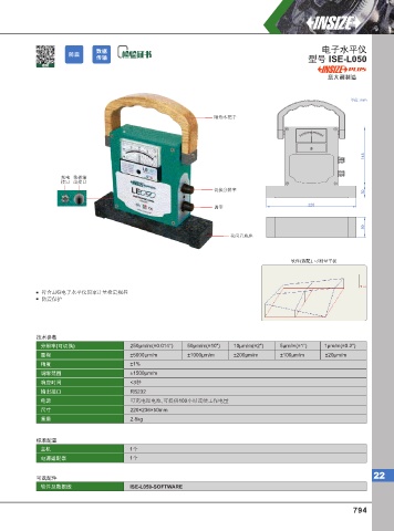 分辨率(可切换) 250µm/m(=0.014°) 50µm/m(=10") 10µm/m(=2") 5µm/m(=1") 1µm/m(=0.2")