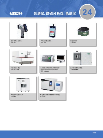 光谱仪, 碳硫分析仪, ⾊谱仪 24 手持式荧光光谱仪 手持式拉曼光谱仪 微型磁谱仪 页码 851 页码 852 页码 852 火花直读光谱仪 X射线荧光光谱仪(RoHS检测仪/ 油料金属颗粒光谱仪 页码 853-855 合金成分分析仪/镀层测厚仪) 页码 859-860 页码 856-858 高频红外碳硫分析仪 气相色谱仪(RoHS2.0邻苯快筛仪) 页码 860 页码 861 850