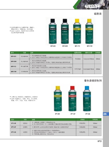 2. 适用于被检工件浅色表面有油性物质或检测后会生锈的工件探伤