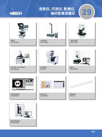 投影仪, 闪测仪, 影像仪, 轴杆影像测量仪 29 投影仪 大型闪测仪 一键式闪测仪 页码 923-934 页码 935-936 页码 937-944 2D+3D复合式自动影像仪 卧式影像仪 影像仪 页码 945-946 页码 947 页码 948-966 影像仪测量软件 影像仪夹具 玻璃线纹尺 页码 967-968 页码 969-971 页码 971 轴杆影像测量仪 页码 972-978 922