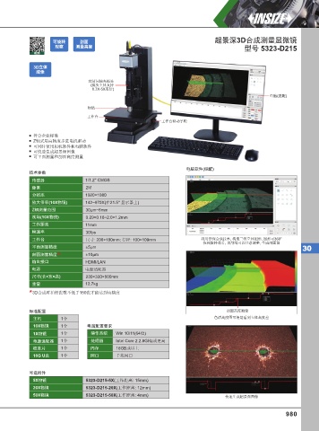 工作台 尺寸: 200×180mm; 行程: 100×109mm 利用景深合成技术, 构造三维立体图形, 图形可360°